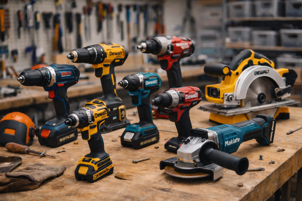 Marchi affermati come Bosch, Makita, DeWalt, Milwaukee, Hilti, Festool e Metabo hanno costruito la loro reputazione attraverso decenni di prodotti affidabili. Offrono generalmente:
